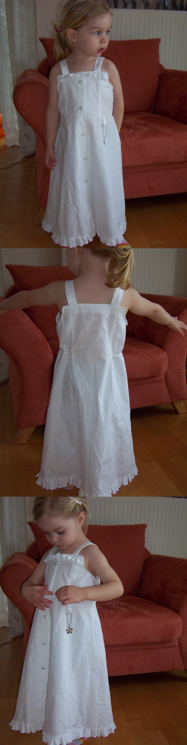 Achtung: Im Schnittmuster fehlt die Angabe des Schleifenbandes komplett: Man braucht zwei Streifen 3,5 x 70cm (incl. Nahtzugabe, bei Gr. 116); ich habe die Streifen aber noch vieeeeel länger gemacht, damit es dann nach vorne geht und da nochmal gebunden werden kann.