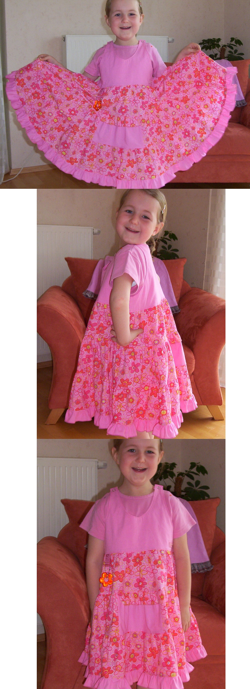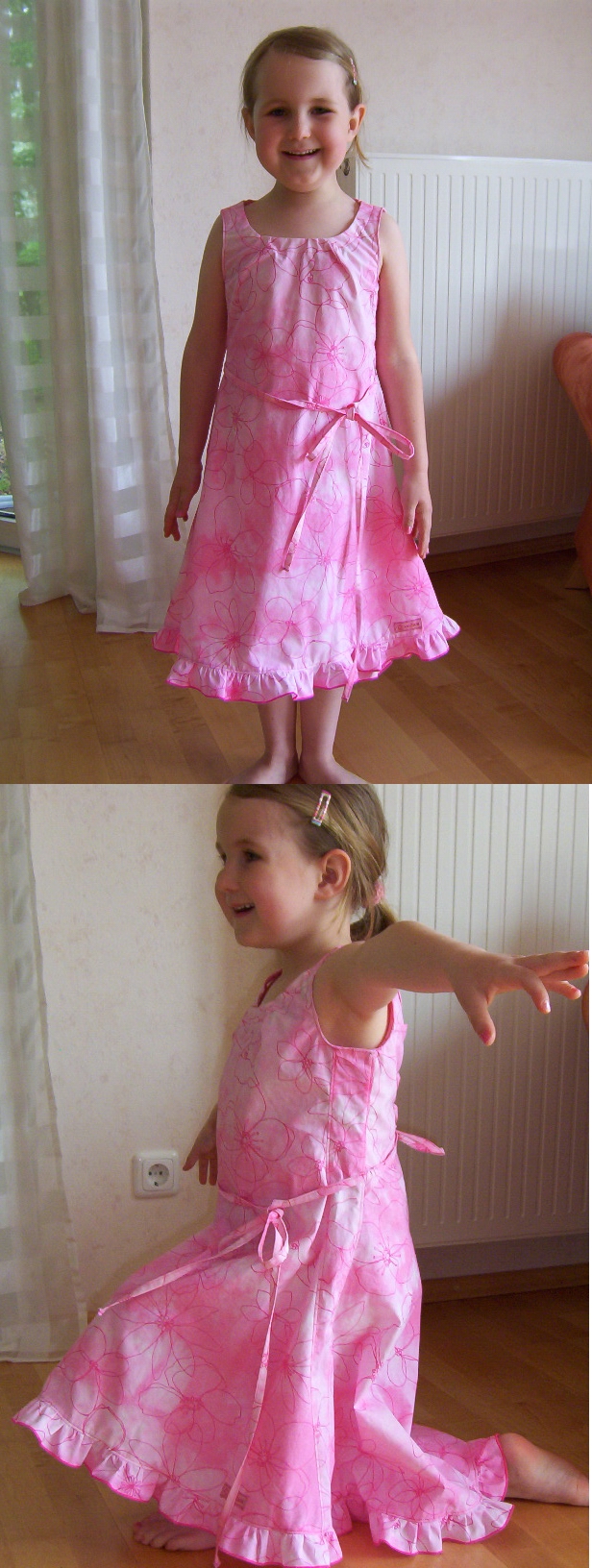 Sommerkleid mit dem Arbeitstitel: Die sicht den Wolf rüscht..... Aber ich finde, es hat sich gelohnt, Lucie gefällt´s jedenfalls; Roos Modell 3012;