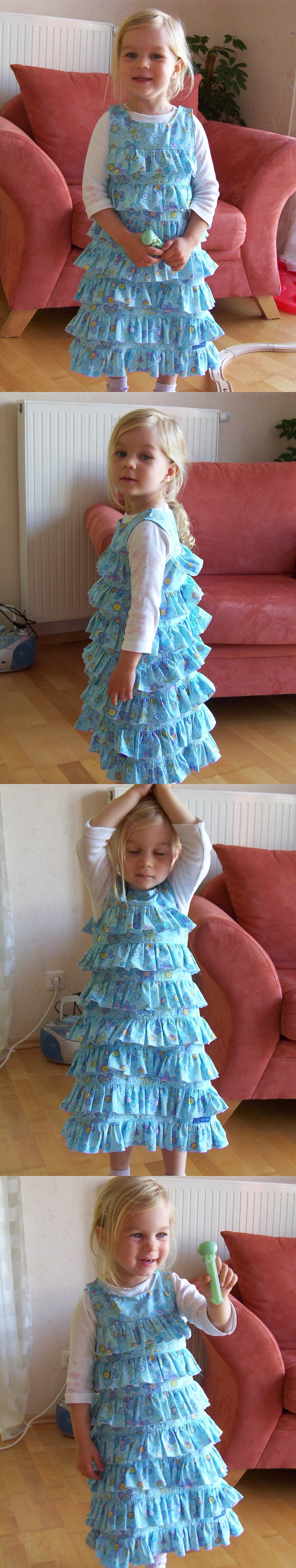 Rüschen-Rüschen und nochmal Rüschen.... mega-weites Kleid in Gr. 116; es ist wirklich traumhaft! Könnte allerdings ein bißchen länger sein!