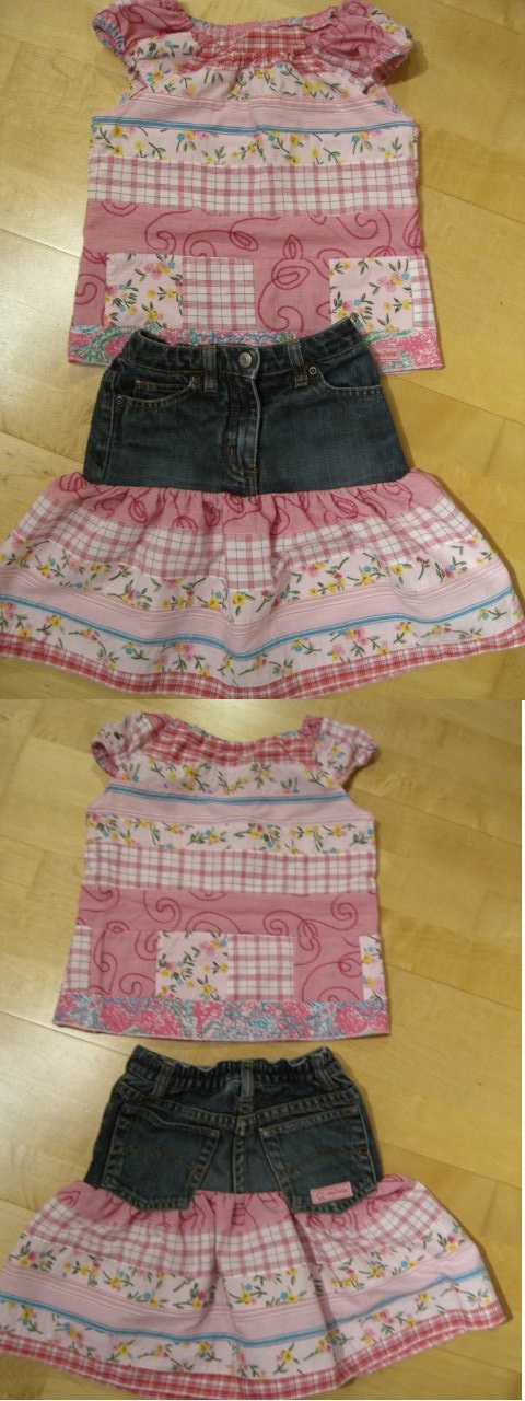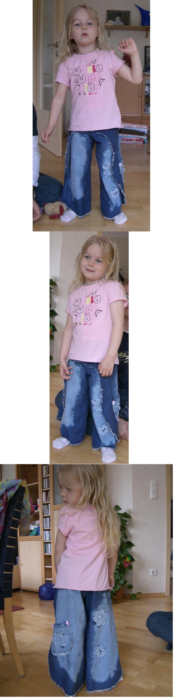 Und aus einer alten, schonmal verschönerten und verlängerten H+M-Jeans gab´s für Lucie noch einen passenden Rock dazu. So paßt die 92er-Hose auch noch mit 104/110 :-))