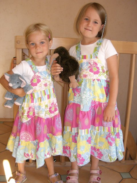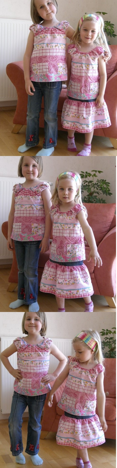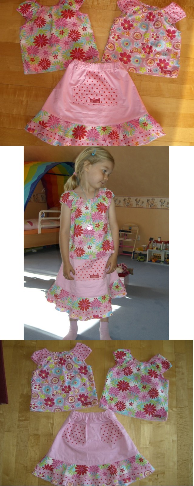 (Schnitt Röcke: Uli in 98/104 und 122/128 mit dreifachen Volants, bei dem anderen sind die Volant-Stoffe genau andersrum;
