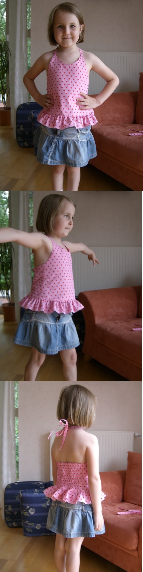 Schnitt Neckholder: Yola von Farbenmix, in 98/104 und 122/128, mit einer Rüsche als Abschluß) |
