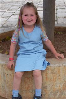 Gr. 116 in aqua; die Träger mußte ich ein ganzes Stück verlängern, saß sonst irgendwie nicht!