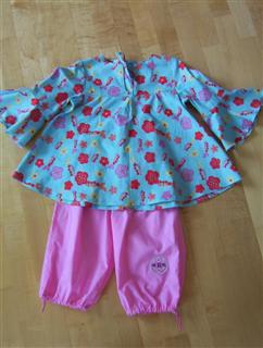 Ringelhose nach Roos 2094, mit Ösen statt Knopflöchern; das Schmetterlingsshirt ist ein eigener Schnitt |