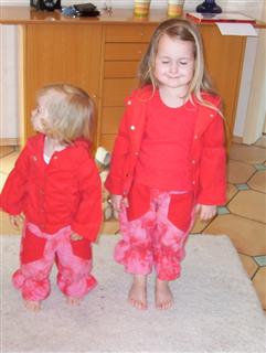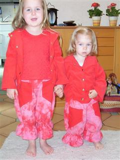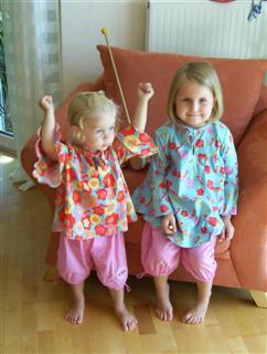 Kombi nach Roos 2096 A,B und C; die Hosen sind aus washed pique pearl; die Pullis aus Sommerfrottee; die Tunika aus oli flower sweat, für die Kleine Gr. 92 in lolly, für die Große