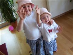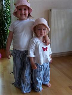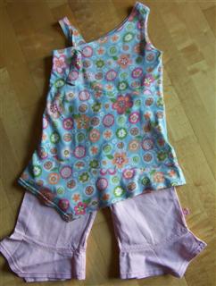 Tunika und Hose aus der Sommer Ottobre 2004; Hosen aus crincle poplin lolly; das Oberteil ist in Gr. 116 aus small flower aqua; in 92 aus big flower aqua; Änderung: Tunika nur einlagig, dafür etwas verlängert