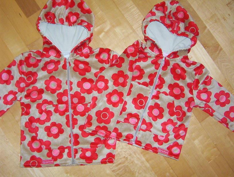 Kapuzen-Jacken aus Microfun; Schnitt: Ottobre 1/2004, Modell 14; Gr. 128 und 104; die Kapuzen innen sind aus Interlock in "kit"; Model-Bilder folgen, die sind gerade nicht da :-))