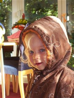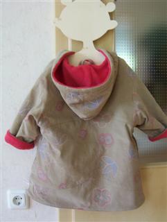 Eine neue Winterjacke, wieder Roos 2084, Modell B; mit Reißverschluß und Ösen an der Kapuze; aus embroidered cord in pebble, gefüttert mit Fleece in sangria; dazu ein passendes Wendehalstuch; meine erste "Auftragsarbeit" für die Tochter meiner Freundin!