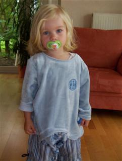 Nochmal der Pulli nach Roos 2097 A+C; aus Microfun und flower Nicky in bubblegum; in Gr. 92 fällt recht kurz aus; das Model schläft schon, aber Lisa war noch wach...