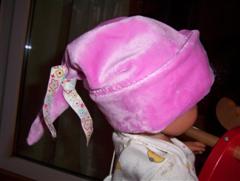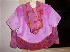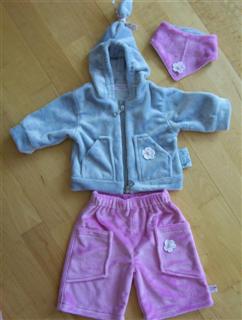 Ein Babyoutfit aus Microfun bubblegum und fog; nach Roos Puppenschnitt Gr. 62; mit passendem Wendehalstuch; mit 2-Wege-Zipper und Zipfelmütze (Schnitt Burda HW 04); wird ein Geschenk