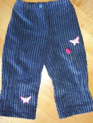 Hier die Hose nochmal für die Kleine in Gr. 92; mit Roos Schmetterlingen und Blumen; Bizzkids HW 04; Modell 2722; der Reißverschluß ist eigentlich völlig überflüssig, sie läßt sich auch so an- und ausziehen; aber jetzt weiß ich wenigstens wie es geht...