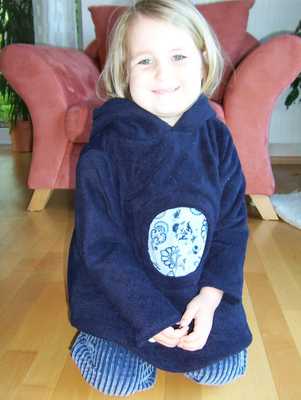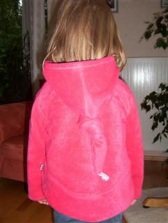 Pulli aus BK-Fleece in Sangria; nach Roos Modell 2097, eine Mischung aus A und C; fällt recht kurz aus; der tolle Stoff wirkt auf den Fotos leider nicht so schön; Die Kapuze habe ich in eine Zipfelkapuze umgeändert, der Halsausschnitt war seeeehr eng, mußte ich nochmal auftrennen und weiter machen.